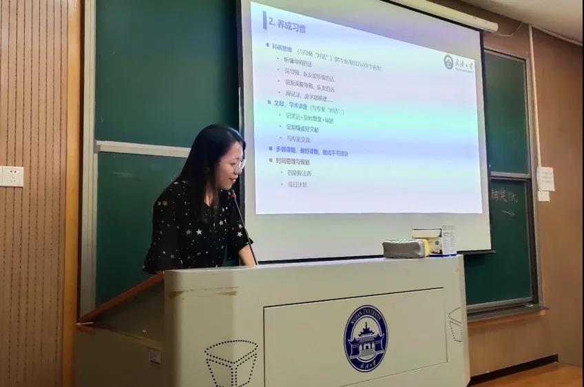 张英老师为新生们介绍了研究生培养方案。她希望同学们能够利用好学校的资源和平台,拓展自己的见识,为未来的发展打好坚实的基础。