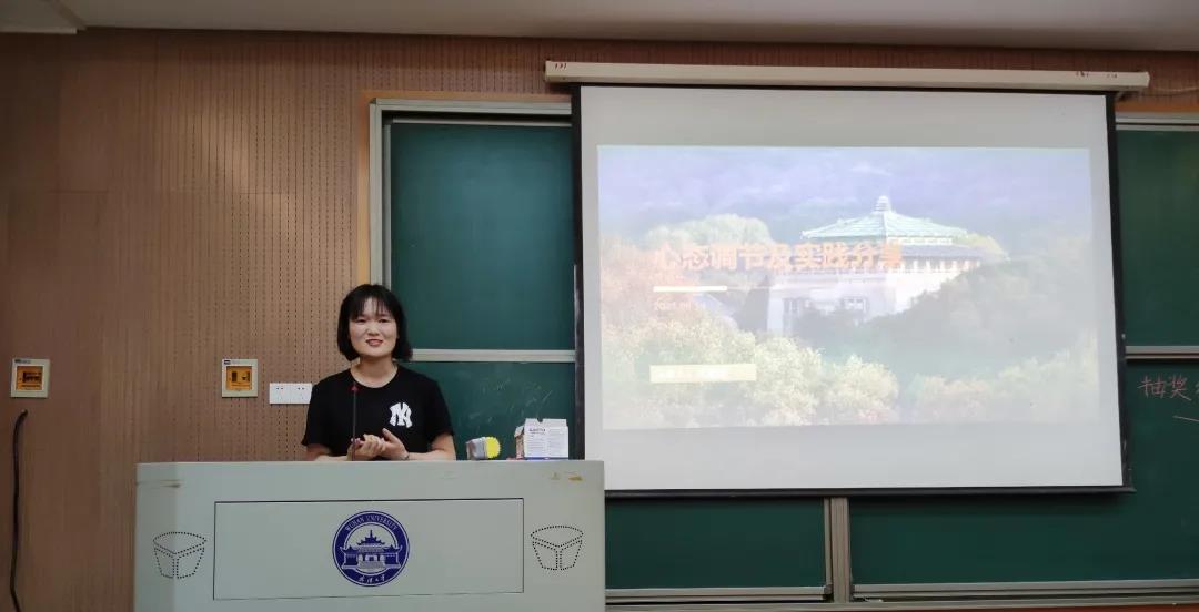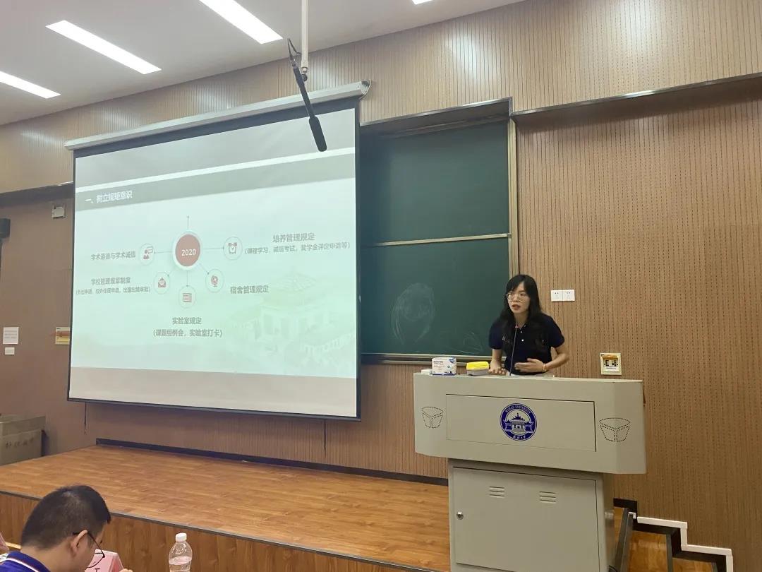 代获获同学讲述了暑期实践工作及防疫工作内容及体验,并向新生分享了研究生阶段心态调节的小方法。