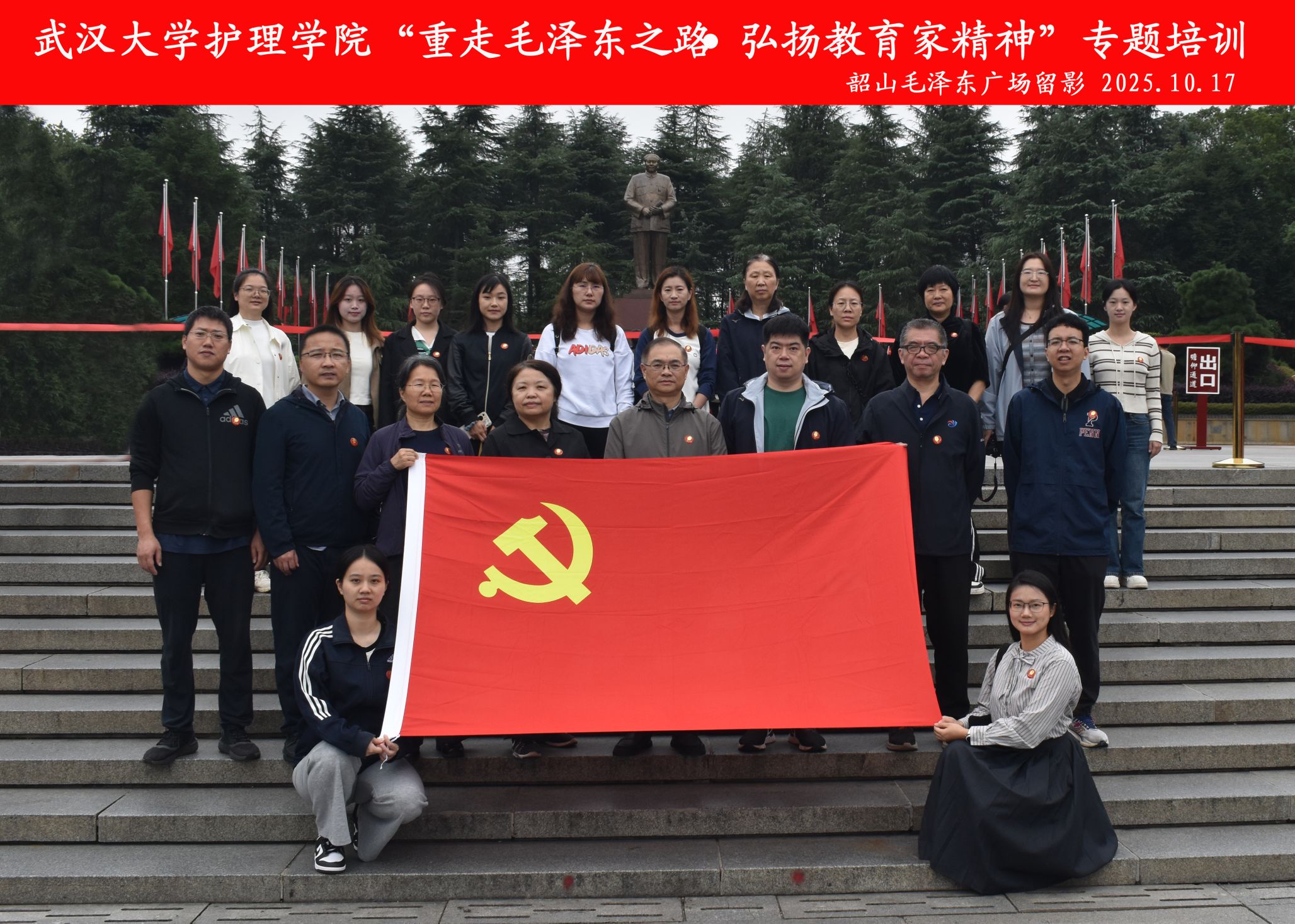 党委为贯彻落实习近平总书记给全国特岗教师代表重要回信精神,推动巡视整改、深入贯彻中央八项规定精神学习教育走深走实,激发全体师生干事创业的热情与担当,组织全体教职工和学生党员骨干等20余人赴韶山开展“重走毛泽东之路,弘扬教育家精神”专题培训班。