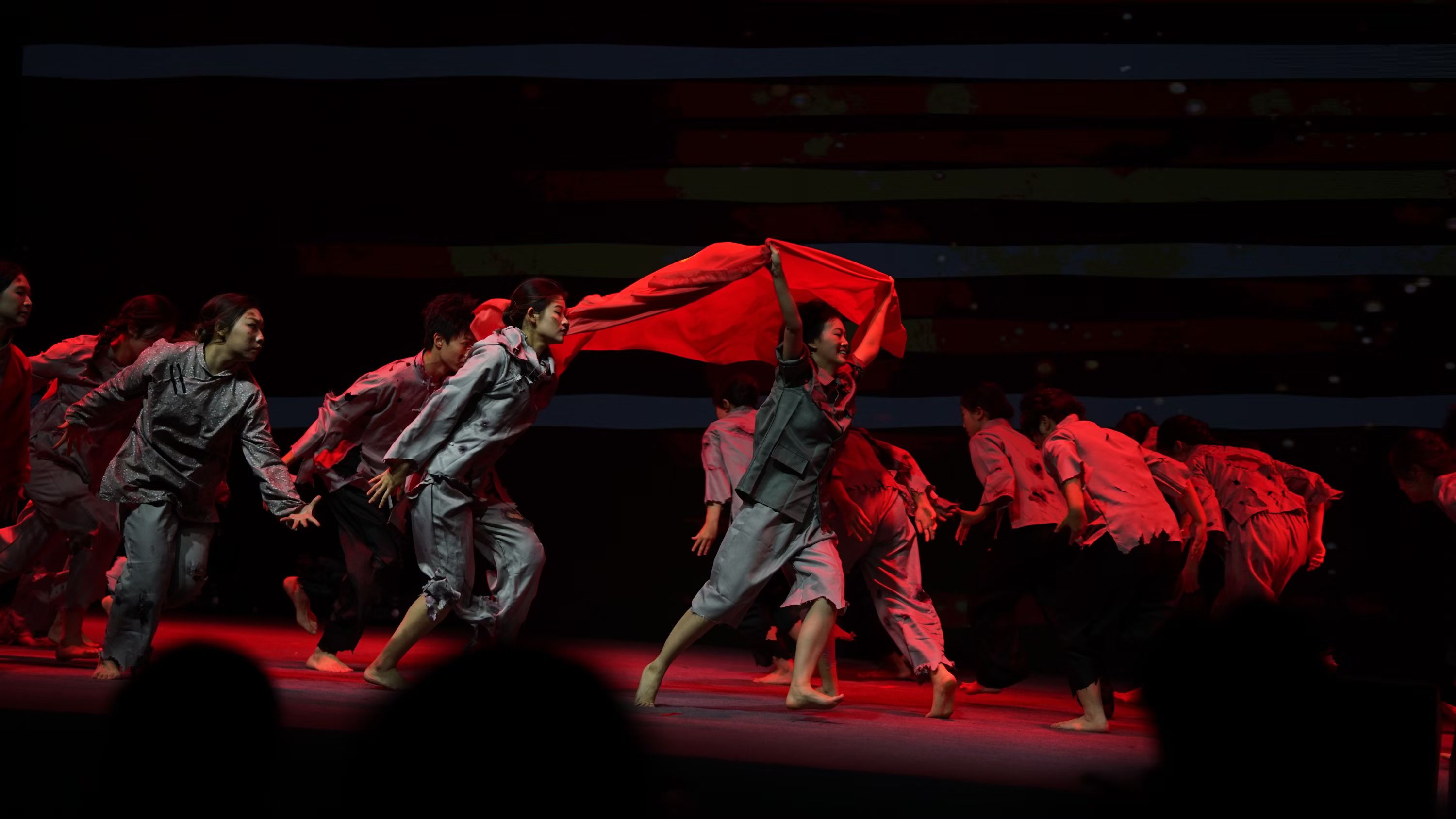 为完美诠释作品内涵,同学们在备赛期间付出了大量心血。无数个晨光熹微的清晨,无数个星月交辉的夜晚,排练室的镜子前始终映照着他们专注而紧绷的身影。为精准还原抗战军民的姿态神韵,队员们反复观看抗战历史影像,逐帧模仿战士冲锋的步伐与神情;为打磨“牺牲”片段的情感表达,他们深入揣摩历史情境,让共情与热泪融入每一次俯身、每一次跃起。膝盖上的淤青、磨破的舞鞋,皆是他们与历史对话、向先烈致敬的鲜活印记。