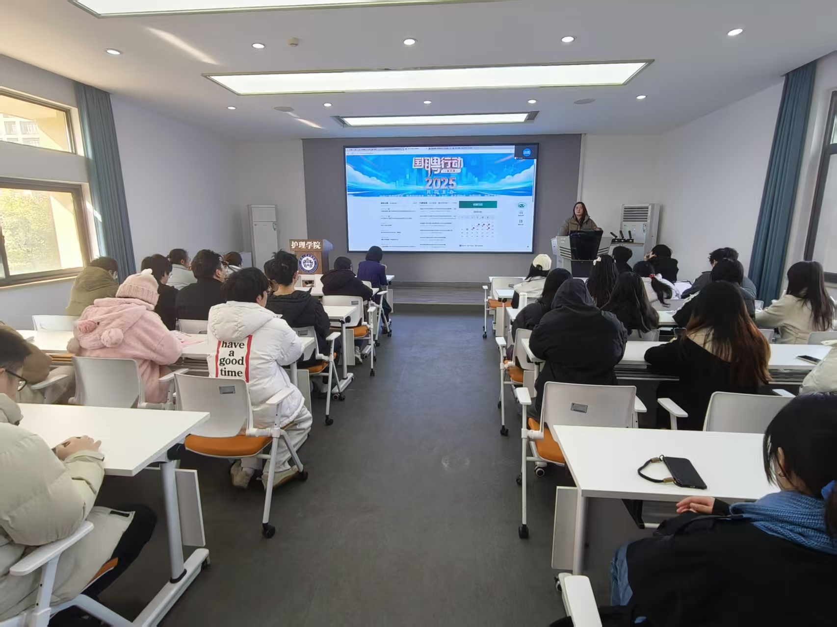 在政策解读环节,毕业班辅导员毛诗柔老师为同学们进行了条理清晰的就业政策梳理。她结合往年毕业生去向实例,详细介绍了基层就业项目、政策性岗位招录、军队文职招聘、国内外升学以及市场化就业等不同发展通道的具体要求。针对就业协议书签订、档案转递、离校手续办理等关键实务,她进行了重点提示,帮助同学们提前规避风险,做到心中有数、行动有方。